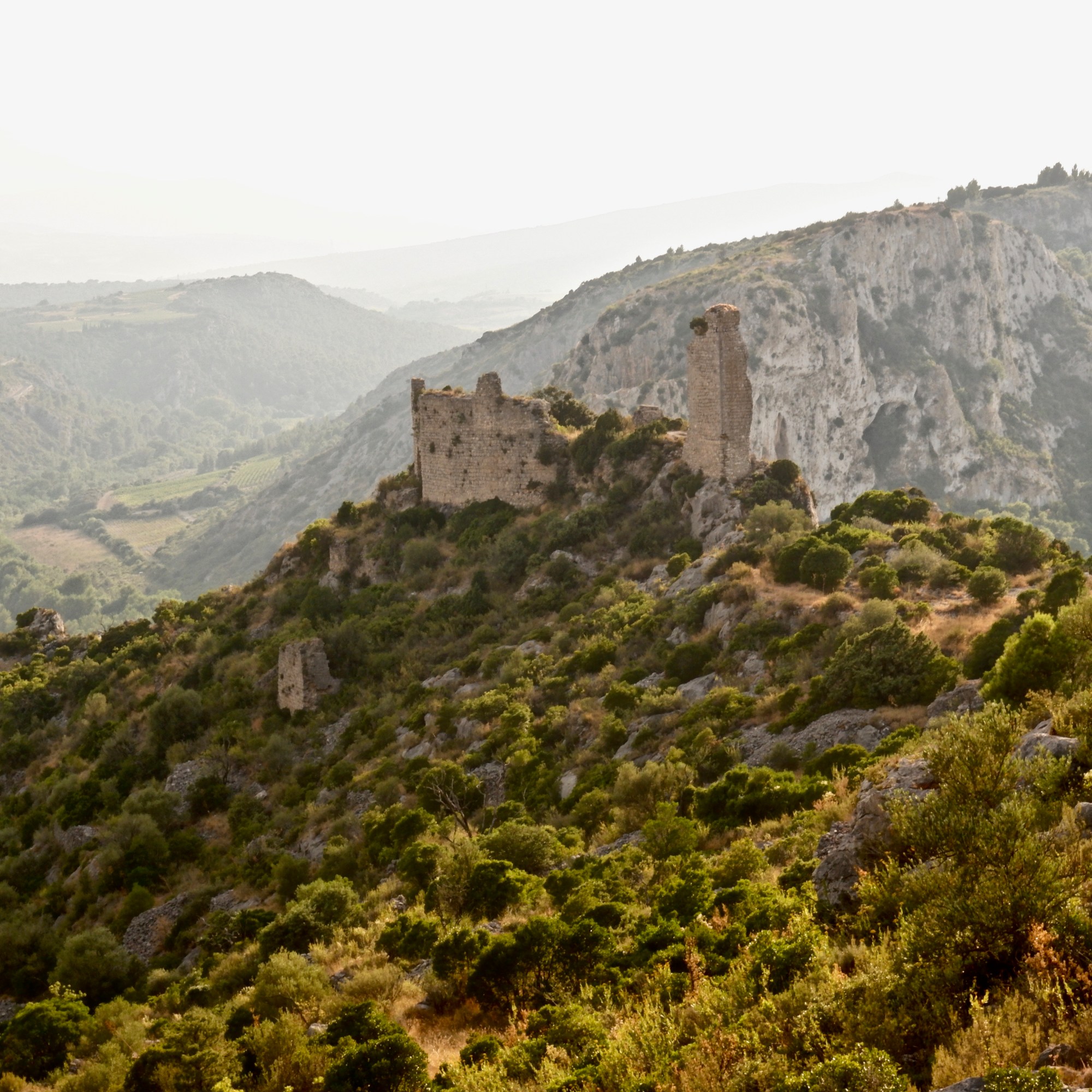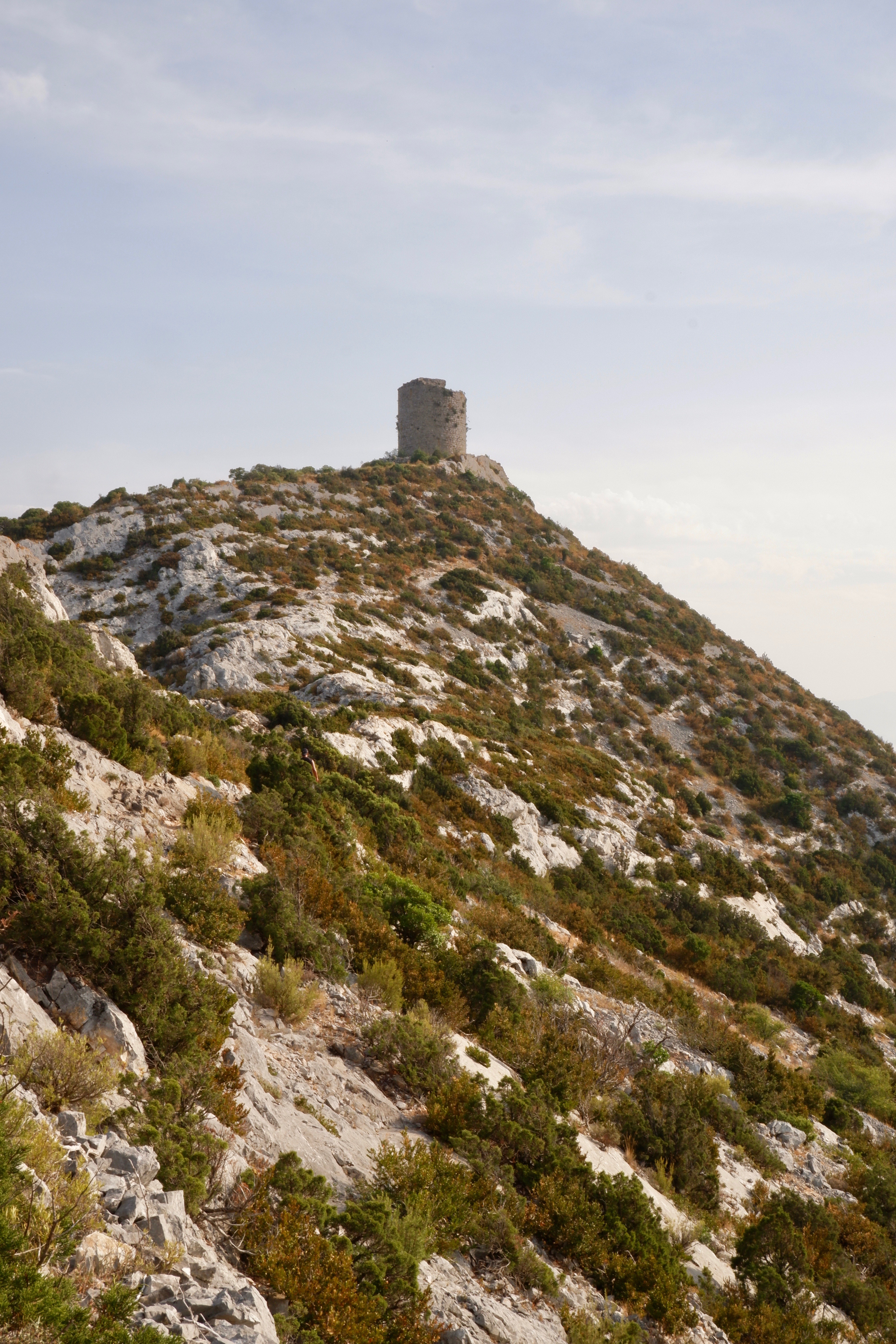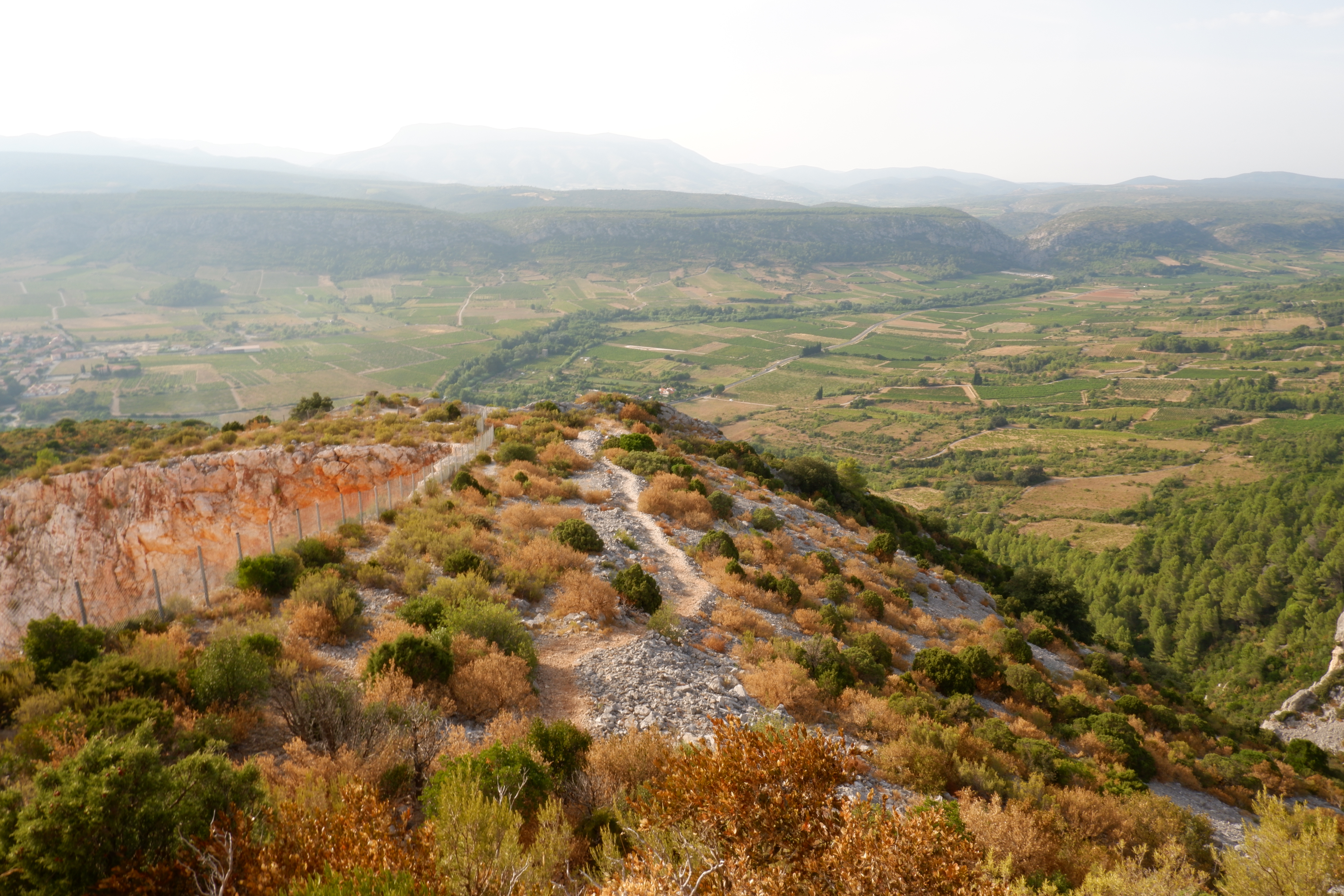 The hike starts following the road upfront and then the trail which drastically goes up during approximately 20 to 30 minutes. At some point during the climb you’ll see the beautiful ruins of Tautavel castle. Although we did not have much time because we were hiking at the end of the day, one can head in the right direction towards the castle before continuing on the initial tracks, to have better views of the castle, the mountains and even discover a hidden cave some say.