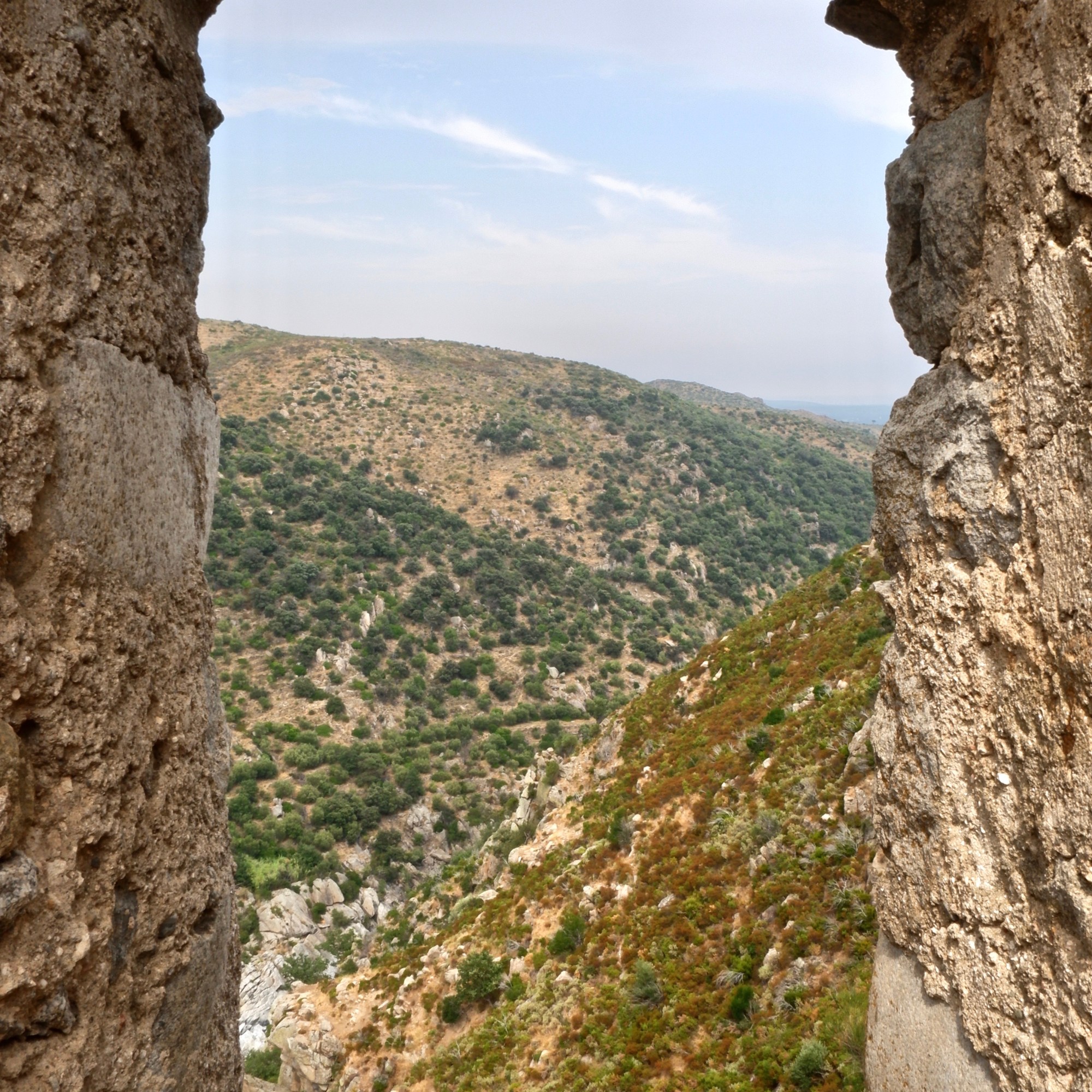 When facing the sheer cliff on the opposite side of the ruins, you can see the ‘Gorges de la Guillera’ below and an ancient granite quarry built within the mountain facing the gorges. When looking a bit further in the background, you’ll also be able to observe the Vinça dam, Mount Corona and the Madres Massif.