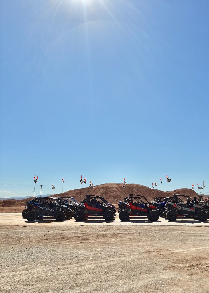 After getting all the equipment needed, the shuttle transfer took us up in their desert dedicated location where all their machines are parked for vehicle choice, installment and departure. Usually the company has all sorts of vehicles from ATVs to Aces and Side-by-Sides which you would be able to drive if you can drive a car or a go-cart for some of them. Although this was my first time riding this kind of vehicle, now that I’ve done the activity myself, I would most probably recommend to rent one of the machines that come with a sunshade which is much more comfortable considering the terrain, the dirt and… well we’re in the desert so there’s that as well!